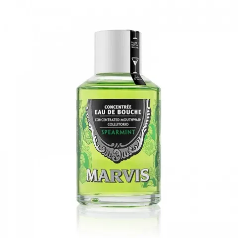 Płyn do płukania Marvis Spearmint stosuje się w celu utrzymania higieny jamy ustnej, eliminacji nieprzyjemnego zapachu i poprawy świeżości oddechu.