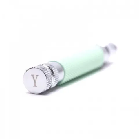 Yaqi RAG1915 — to wysokojakościowa mosiężna rączka do trzyczęściowej maszynki, wykonana w jasnozielonym kolorze przez popularnego producenta akcesoriów do golenia.