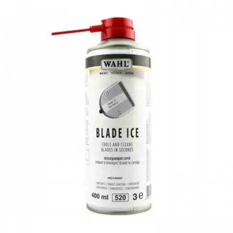 Wahl Blade Ice szybki i skuteczny preparat do utrzymiana higieny narzędzi i podniesienia wydajności, trwałości ostrzy maszynek. Natychmiastowo usówa włosy, brud i zanieczyszczenia. Chłodzi ostrza i pozostawia na nich powłokę smarującą. Konserwuje i zabezpiecza znacząco ostrze przed zużyciem.