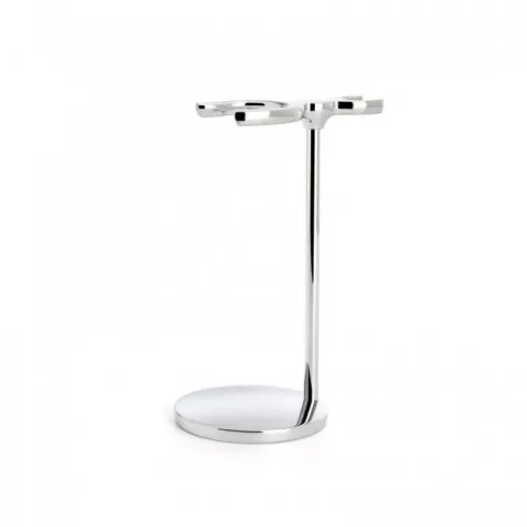 Stojak na pędzel i maszynkę do golenia Mühle. Do stojaka pasuje większości standardowych pędzli i maszynek do golenia. Wykonany z chromu, więc jest odporny na wilgoć.