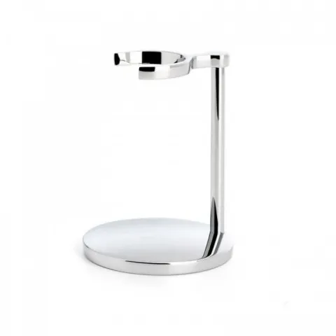 Chromowany mosiężny stojak na pędzel. Pasuje do pędzli Muhle z serii PURIST, KOSMO, BASIC2, CLASSIC. BASIC2, CLASSIC, KOSMO, MODERN, PURIST, RETRO. Obróbka chromowana, duża waga.