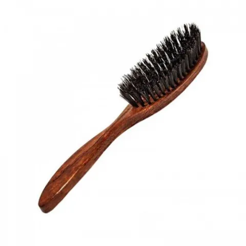 Szczotka do brody z wydłużoną rączką o kształcie dobrze układającym się w dłoni. Dobrane naturalne włosie dzikiej lochy jest sprężyste i optymalnie sztywne aby poradzić sobie nawet z twardym i pokręconym zarostem a jednocześnie nie jest zbyt szorstkie dla skóry twarzy.