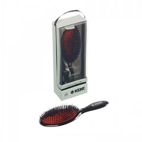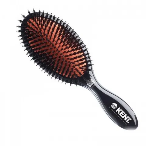 Szczotka do włosów dla kobiet do gęstych włosów KENT CSML z uchwytem w czarnym kolorze z ciemnym włosiem mieszanym. Poduszka na której osadzone jest włosie wykonana w kolorze czerwonym.