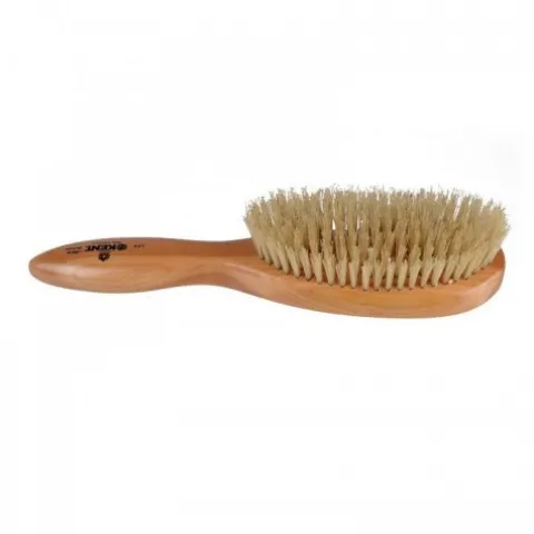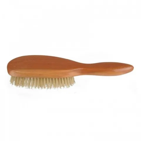 Owalna szczotka z wygodnym wygiętym uchwytem. Wykonana z drewna wiśniowego. Naturalna szczecina w najbardziej nie inwazyjny sposób nie tylko masuje skórę, ale jednocześnie usuwa z włosów łupież, kurz i zanieczyszczenia środowiska.