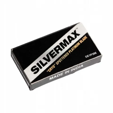 Wysokiej jakości żyletki do golenia Silvermax Double Edge. Każda paczka zawiera 5 ostrzy, które zapewniają gładkie i precyzyjne golenie. Silvermax CRYO są wykonane z trwałego materiału, co sprawia, że są wytrzymałe i skuteczne. Wykonane są z wysokiej jakości japońskiej stali i pokryte unikalną technologią wykorzystującą 5 różnych warstw metali i polimerów. Dzięki nim Twój poranny rytuał pielęgnacyjny stanie się jeszcze bardziej komfortowy. Każde ostrze jest starannie opakowane w parafinowaną bibułkę, zapewniając ochronę i świeżość.